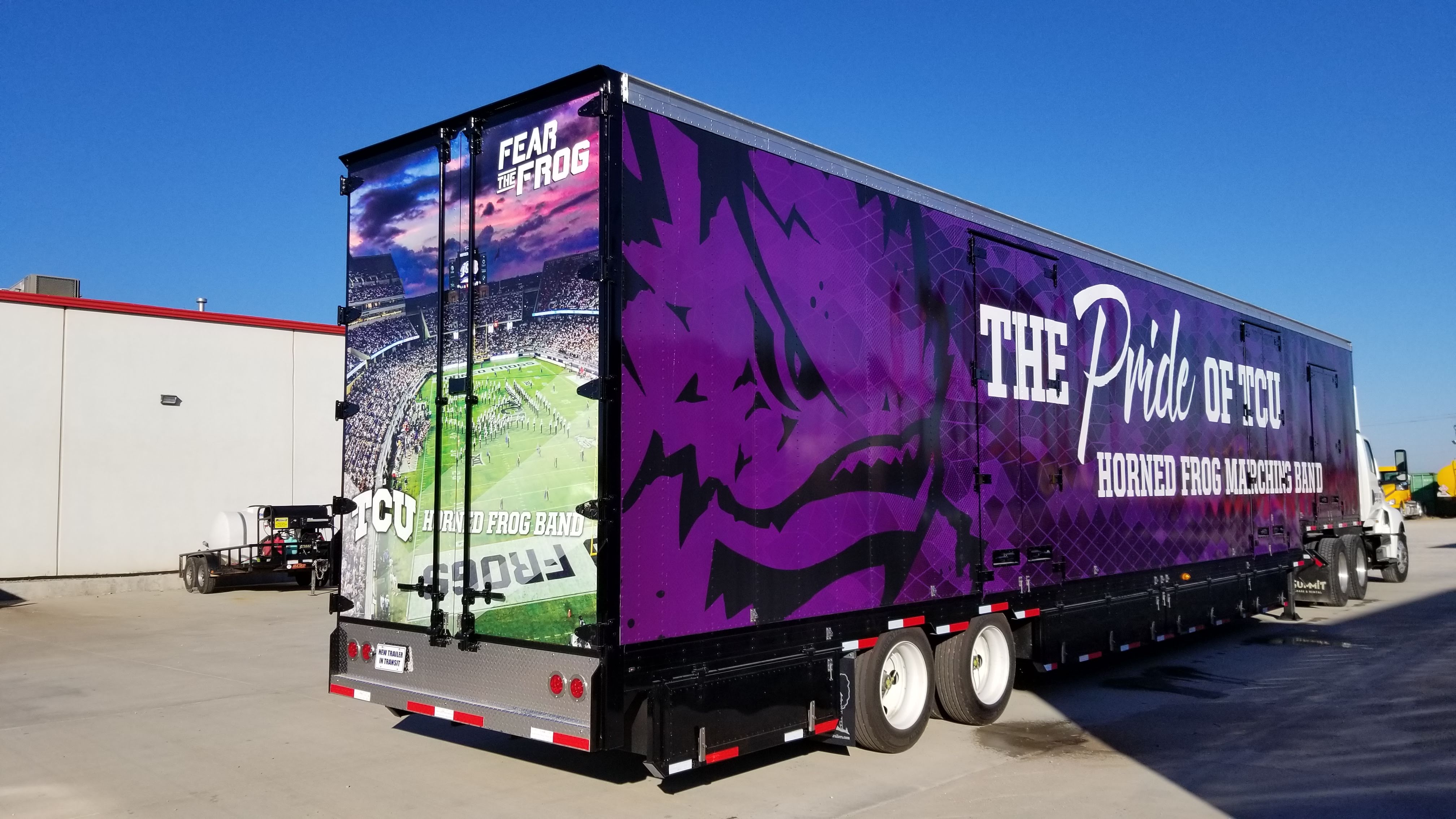 TCU Marching Band Brand new semi equipment trailer
