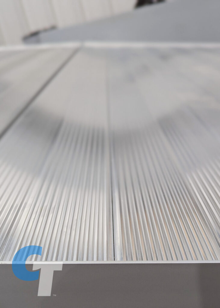 When we started building our first full-width rear ramps in 2016, most aluminum planks on the market were smooth, low-grip surfaces designed for stadium bleachers—great for sitting, but not ideal for walking! To solve this, we engineered our own ramp plank profile with a unique, bi-directional high-grip design. It’s smooth enough to roll equipment effortlessly, yet grippy enough to provide a secure footing. This exclusive ramp plank is only available at The Clubhouse!