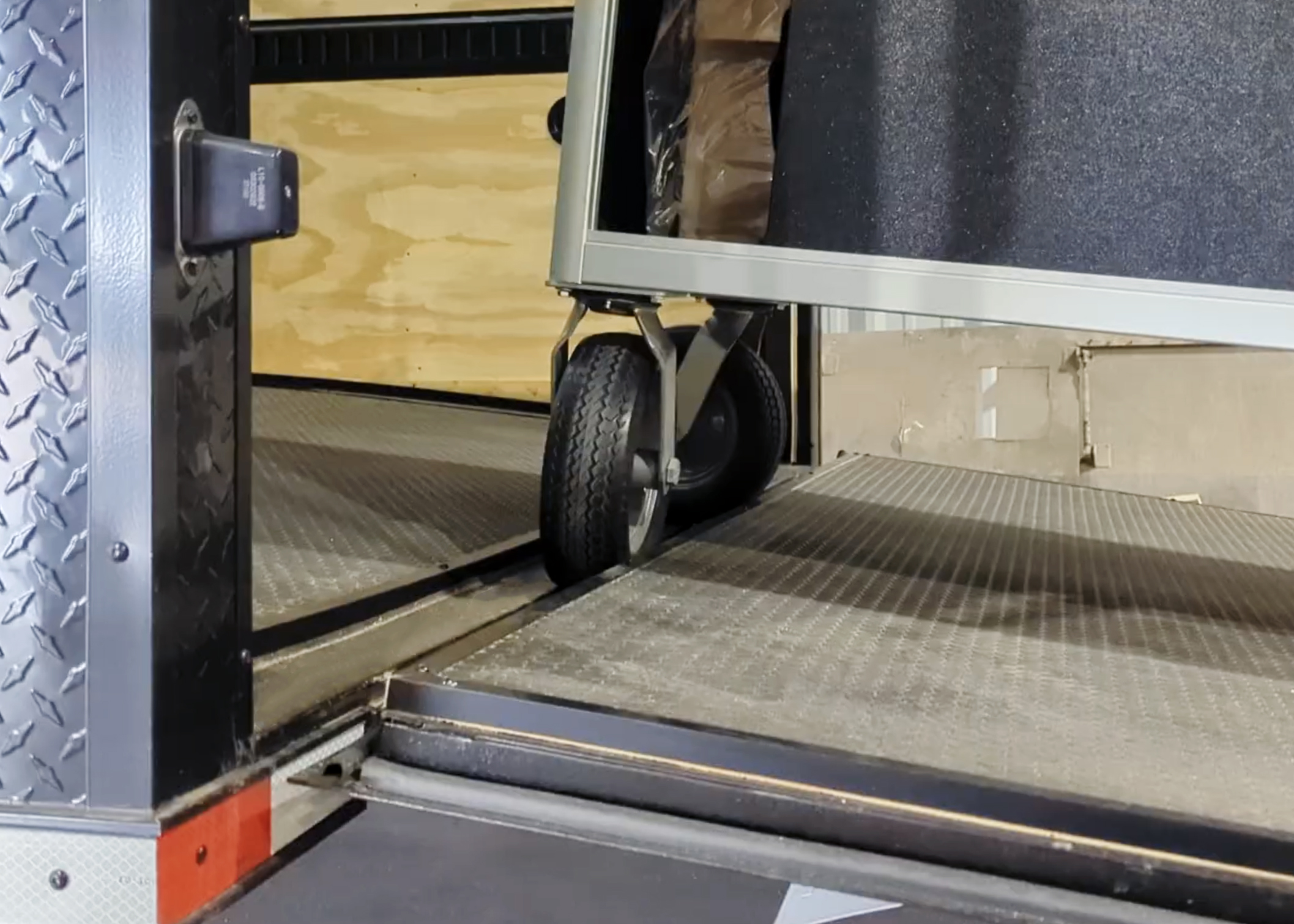 Just like the Gap Flap, that steep lip from the ramp door to the ground can be a hassle. Our aluminum Approach Plate smooths out the transition, making it easier to wheel even the most unruly concert xylophone into your trailer. This feature has been a standard in our Small Trailer Solutions since we introduced the line in 2020. In Semis, it’s included on the full-width rear ramp, as well as the interior ramp from the 1st to 2nd floor (if equipped).