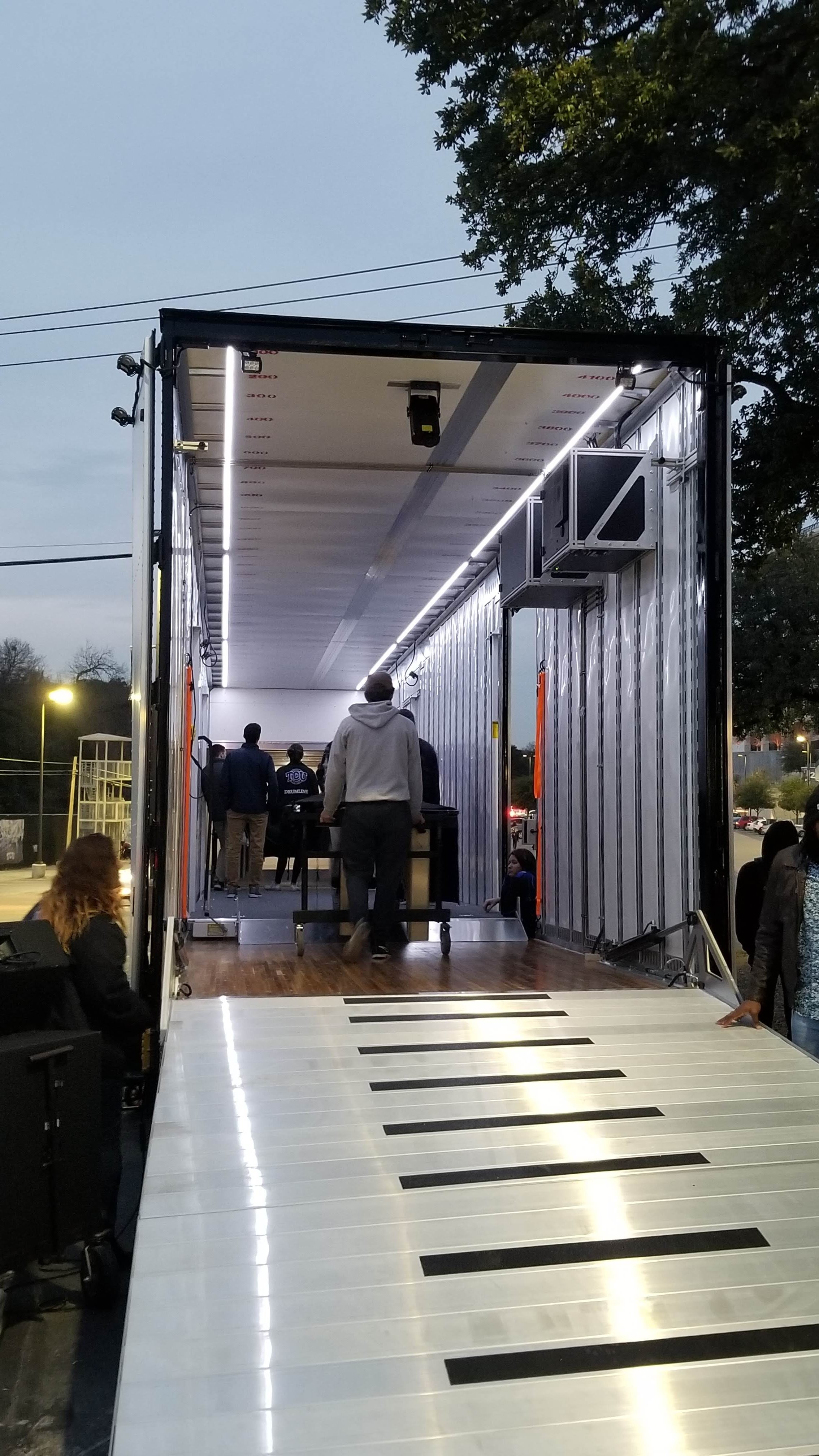 TCU Marching Band Semi Equipment Trailer Night loading LED Lighting Hydraulic Aluminum Ramp Post author By Tyler Hadley Post date April 26, 2019